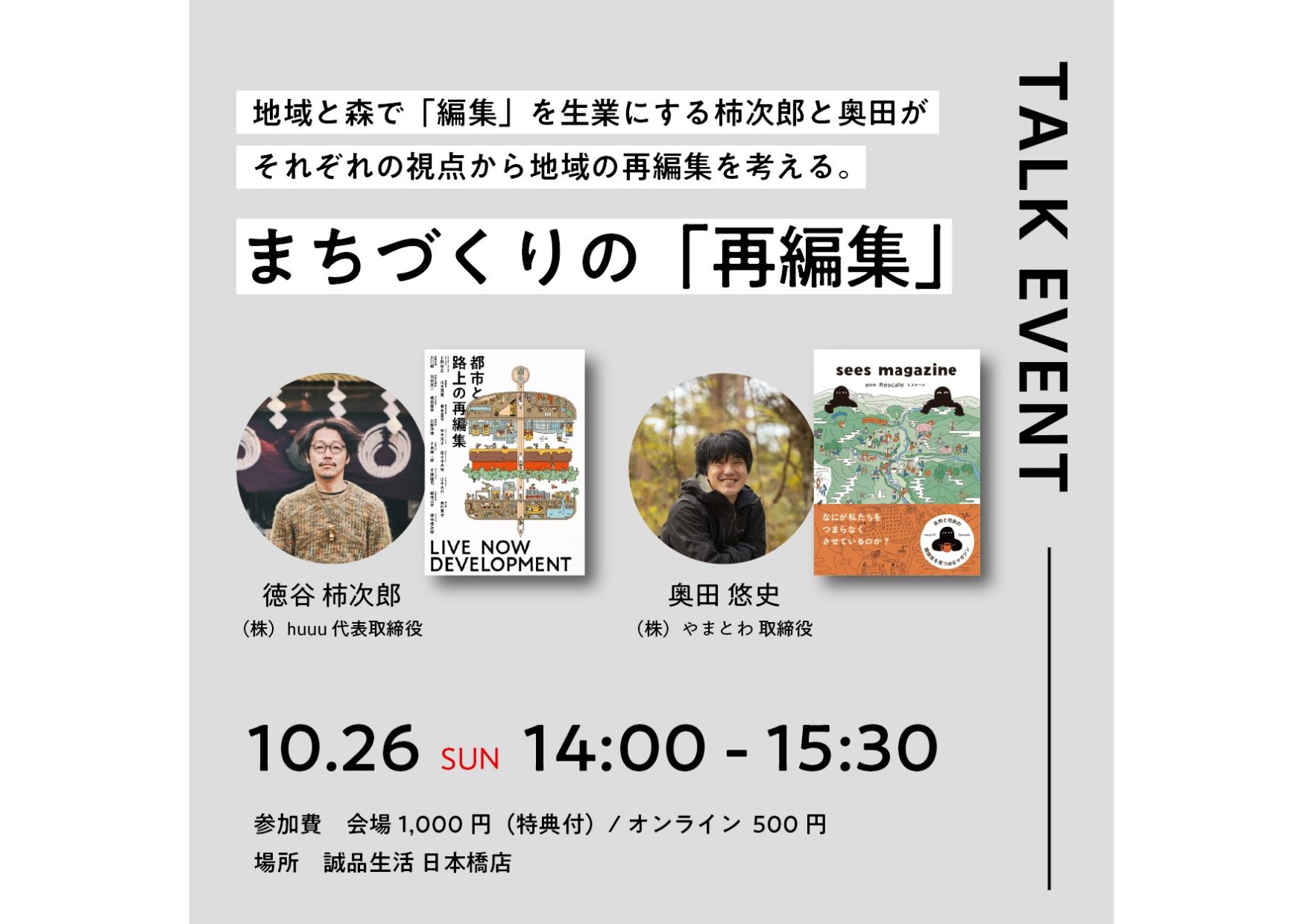 誠品生活日本橋にて開催。“まちづくりの「再編集」”奥田が徳谷柿次郎氏とトークイベントを行います