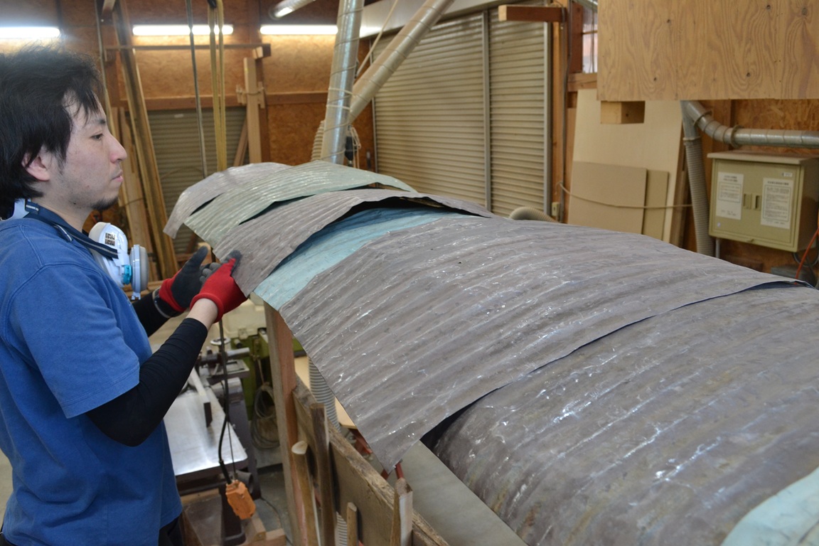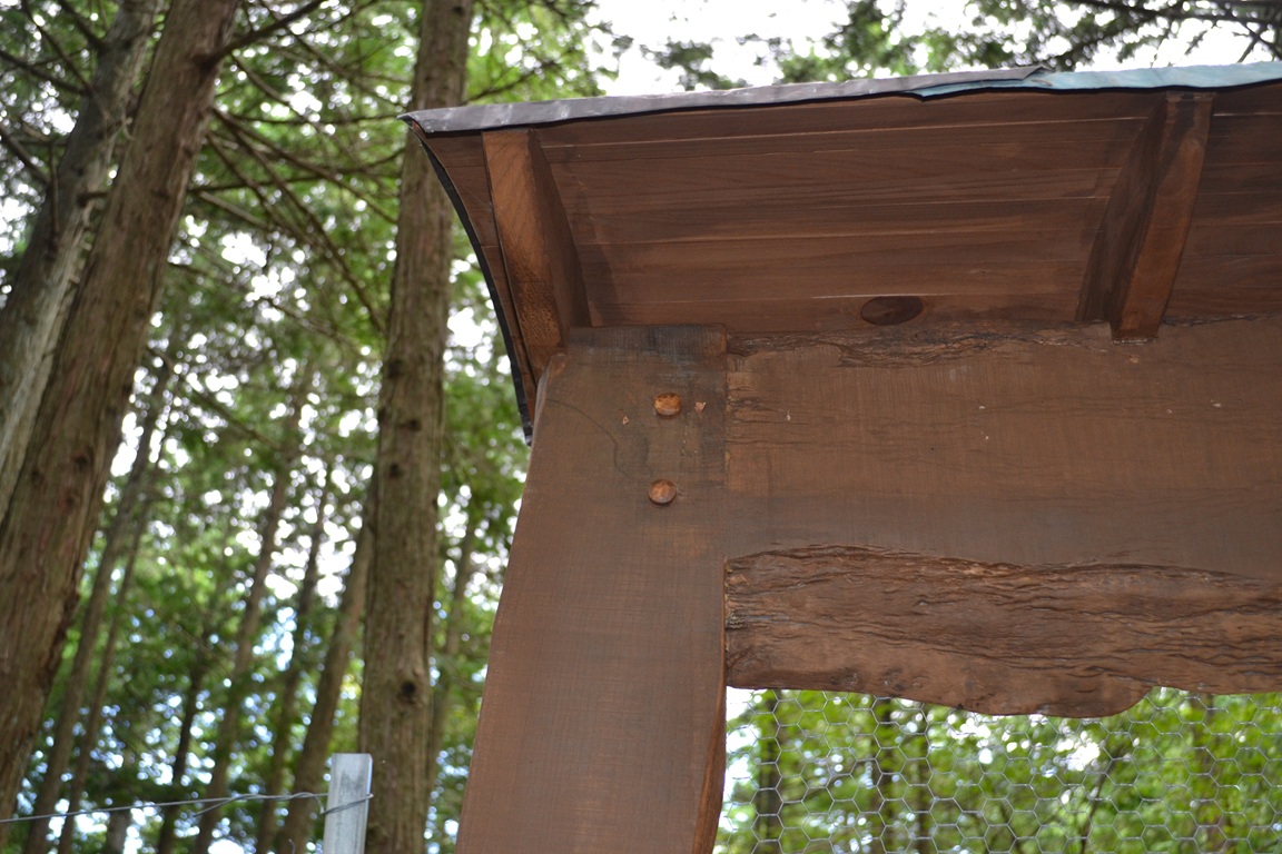 屋根は垂木と野地板からなる構造の上へ波トタンを設置しました。波トタンは新しいものではなく、別の場所で使われていたものを再利用し、叩いて平らにしてからカットして使用しています。