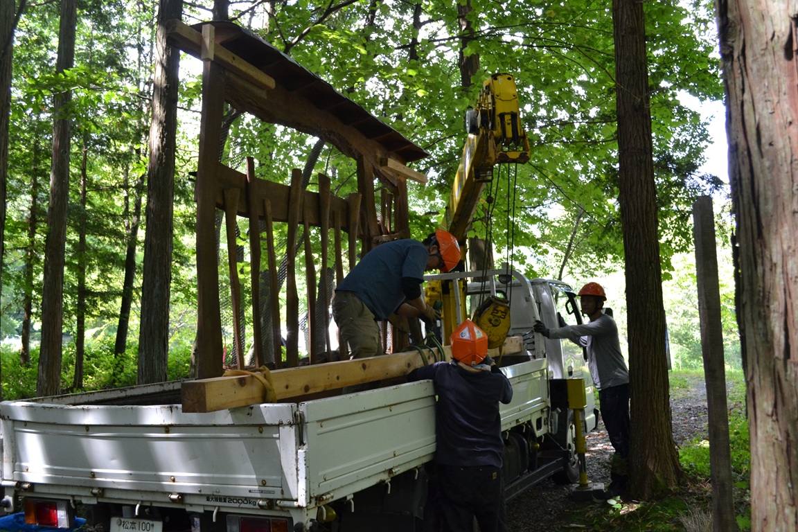 現代は木の個性を活かせる木製品を作れる機会が少ないのですが、森の中に設置された今回のゲートでは、ひとつひとつの個性が光ります。