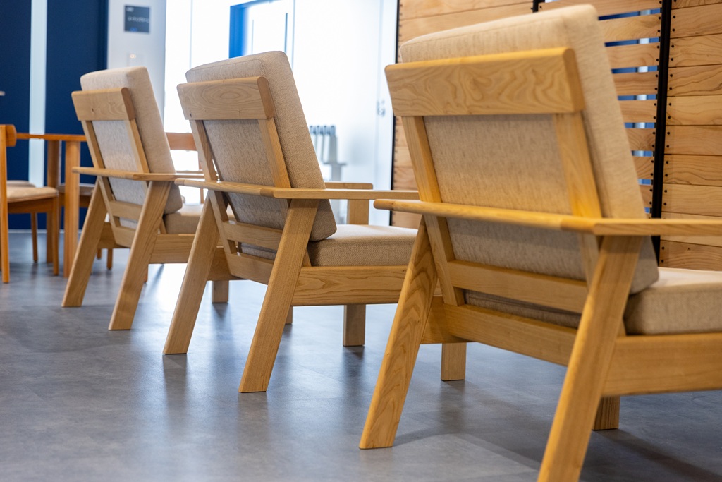 無垢材の手触りを感じながら、休憩時や会議、様々な場面でたくさんの皆さんに座っていただけると嬉しいです。