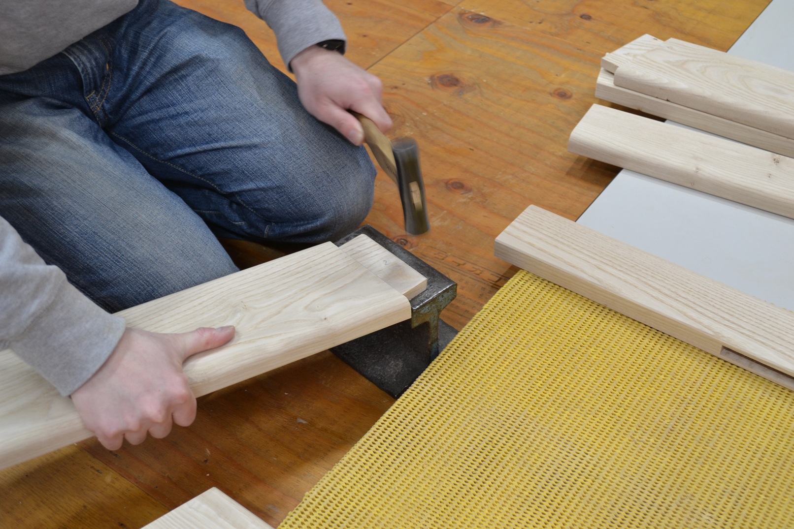 以前中村さんがデザインしたソファを元に、木材の性質や利用方法を考慮して今回のためにデザインや作り方をアップデートしています。